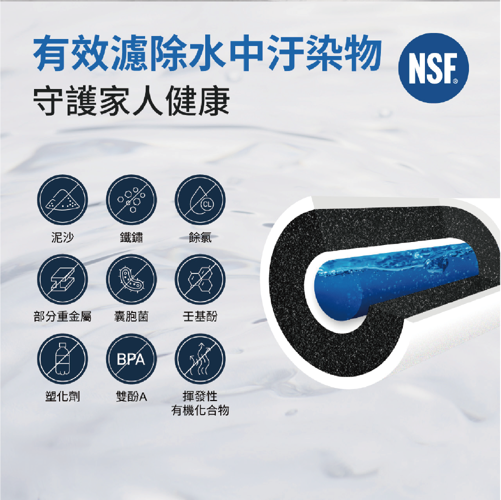 * 有效濾除水中汙染物,同時保留對人體有益的礦物質,新鮮直飲。