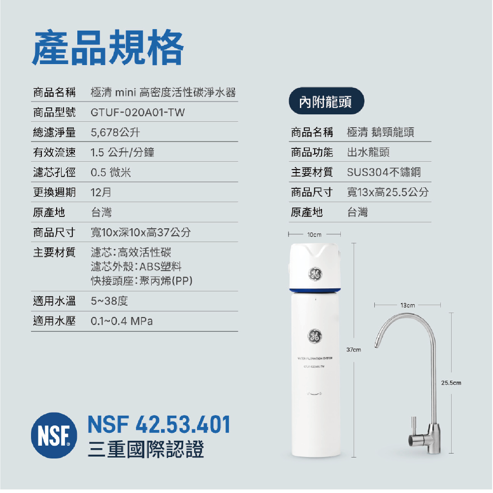 礦物型過濾|極清mini 高密度活性碳淨水器【GE奇異淨水】