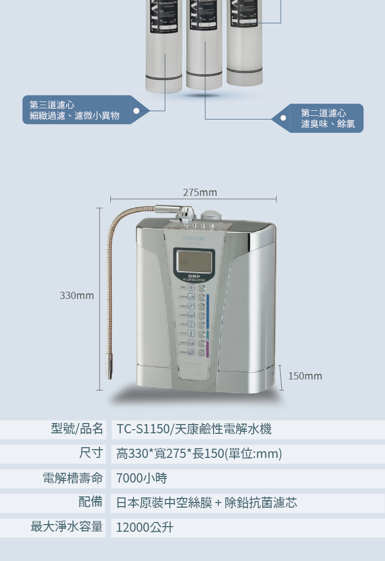 電解鹼性離子水|TC-S1150 成熟穩健電解水機【天康淨水】【旗艦款】