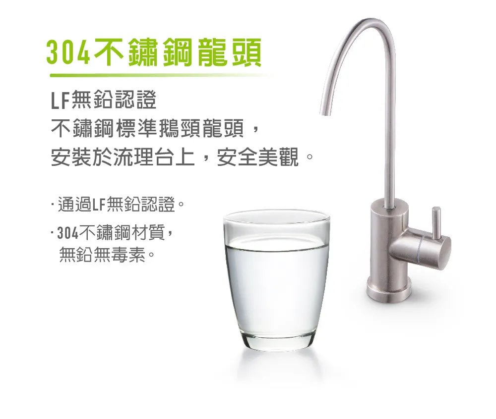 * LF無鉛認證304不鏽鋼鵝頸龍頭,安裝於流理台上,安全又美觀!
