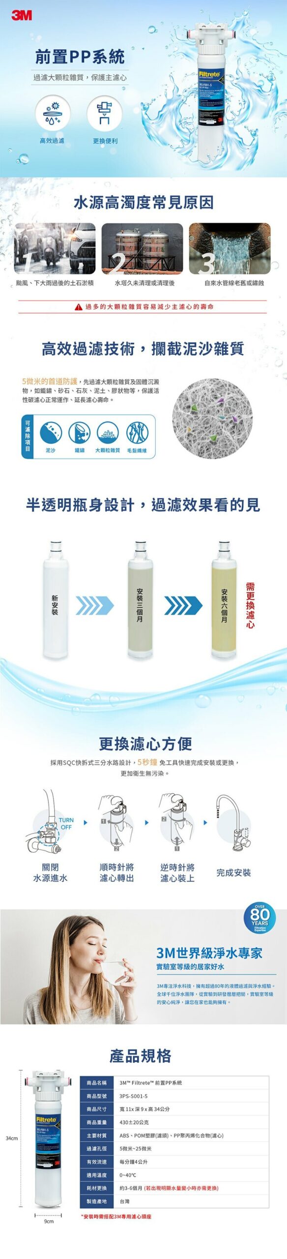 礦物型過濾|3PS-S001-5 前置PP過濾系統SQC【3M】【經典款】