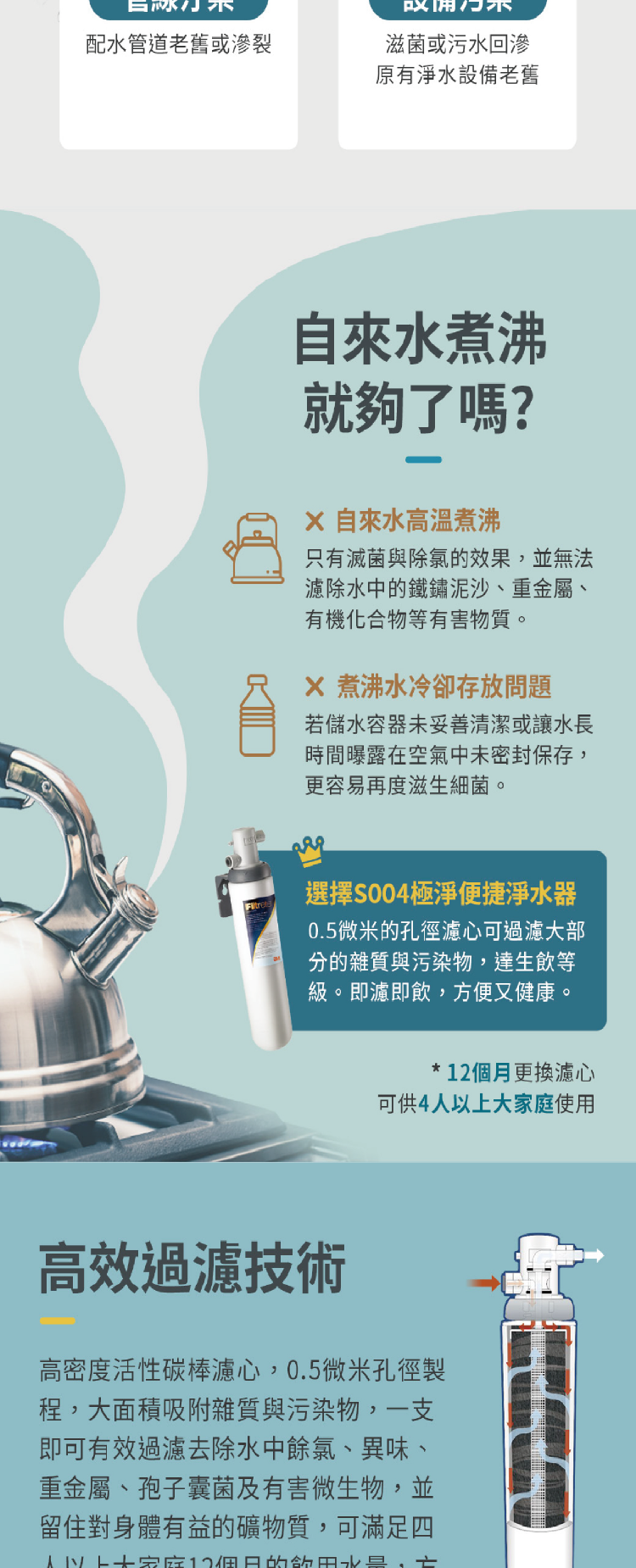 * 通過NSF42號、53號認證,可有效去除水中餘氯、異味、鐵鏽及雜質;可去除水中99.95%孢子孢囊有害微生物