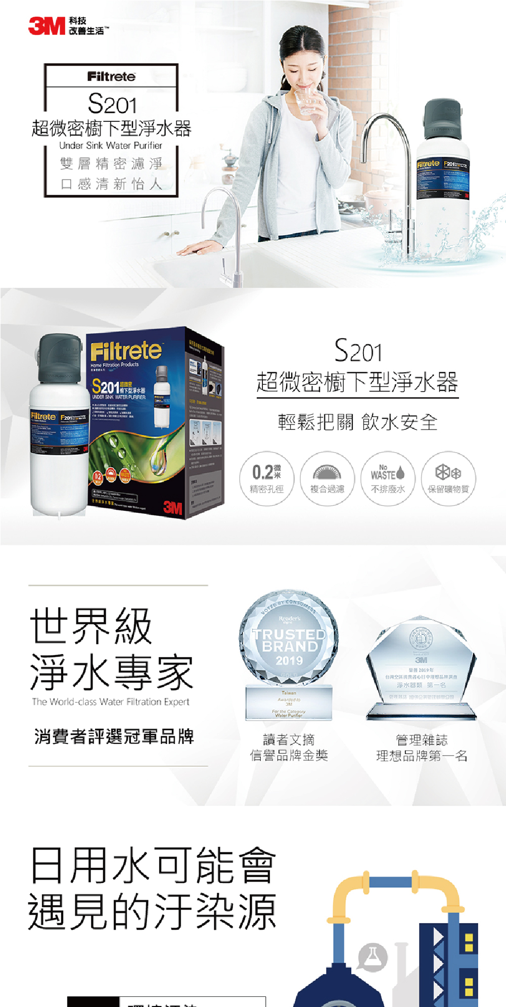 礦物型過濾|3US-S201 超微密淨水器特惠組【3M】【旗艦款】