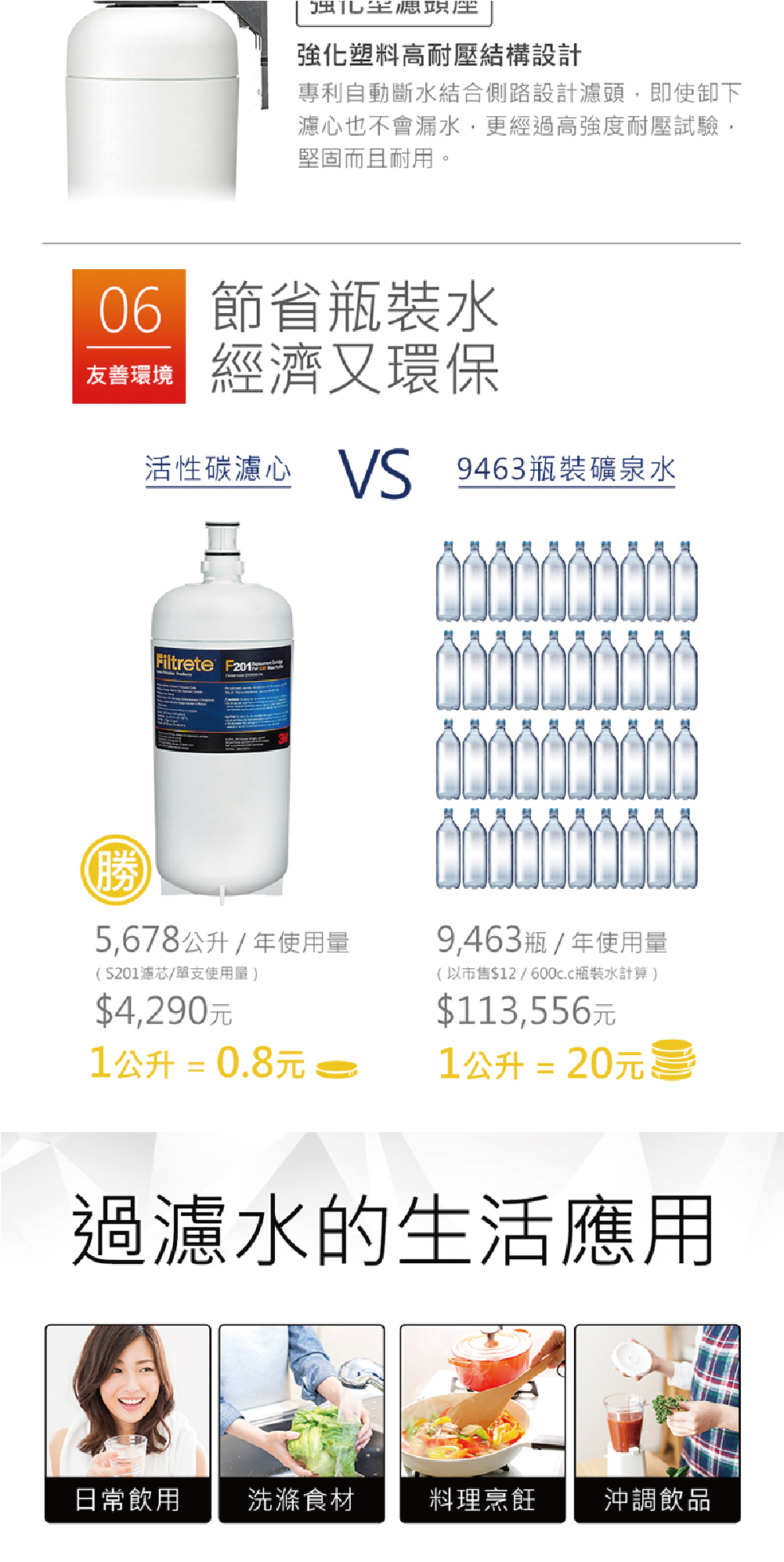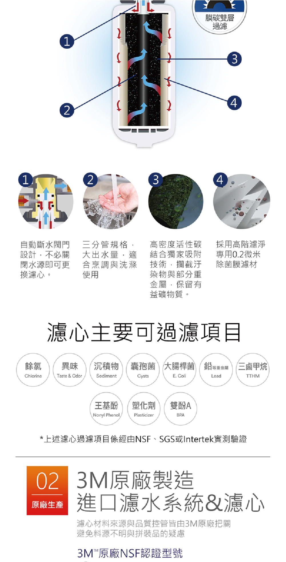 * 3M原廠進口高密度活性碳濾心符合美國FDA CFR-21標準 保留人體所需礦物質