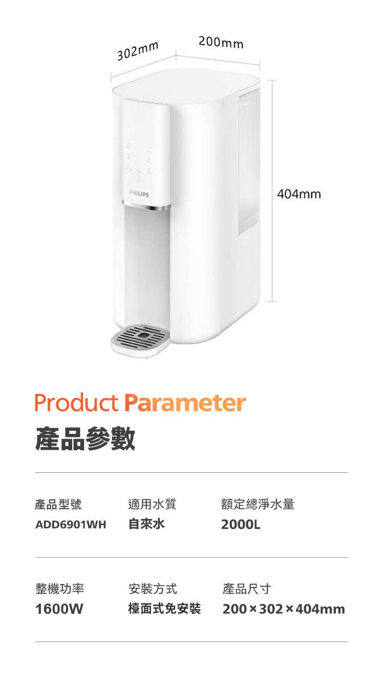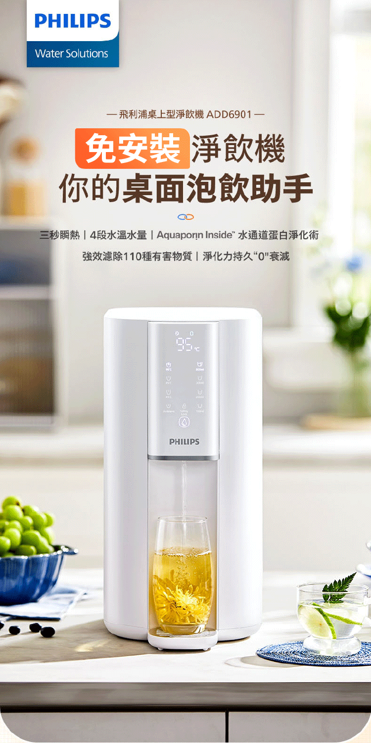 雙溫淨熱飲機|ADD6901BK 瞬熱式RO水通道蛋白淨飲機【Philips飛利浦】【奢華款】