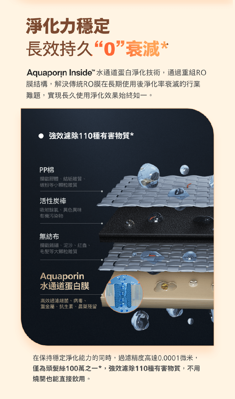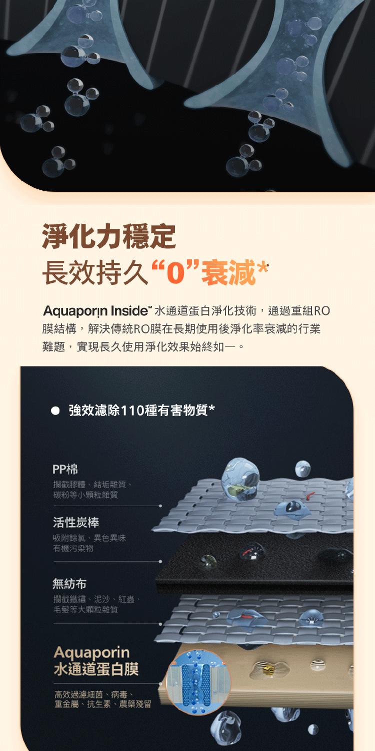 * 最新水通道蛋白濾淨技術強效濾除
