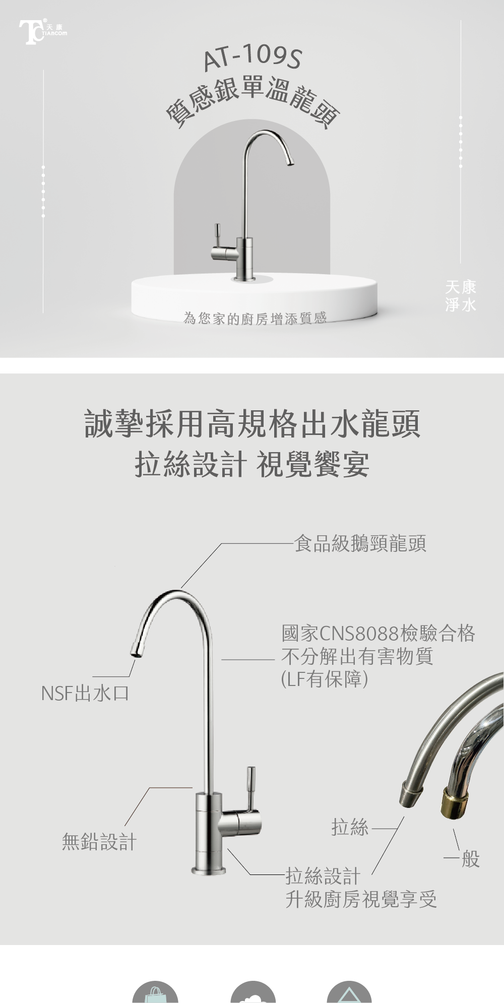 淨水龍頭| AT-109S 天康小拉絲龍頭【天康淨水】【經典款】