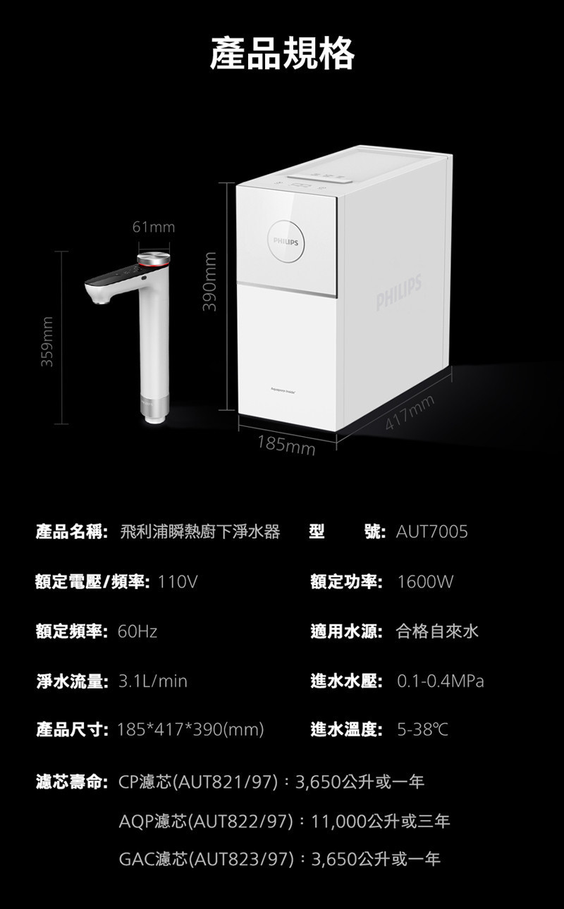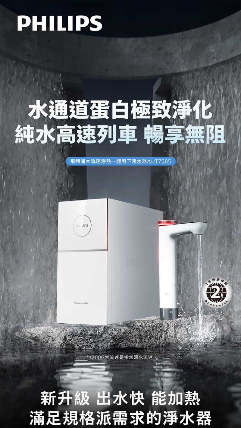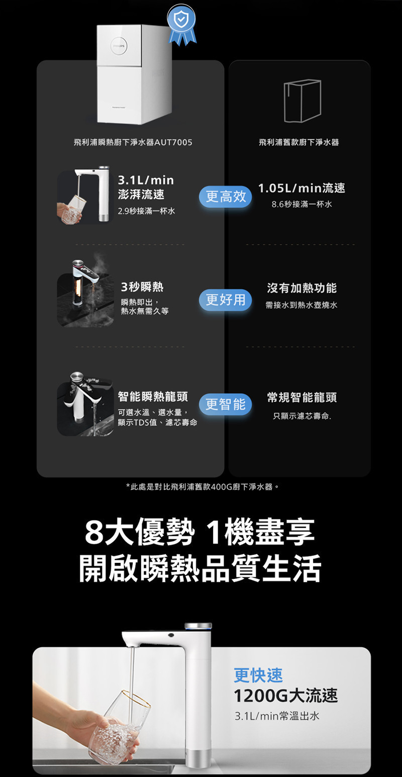 淨熱飲雙機合一|AUT7005 小瞬靜 瞬熱廚下淨水器【飛利浦】【奢華款】
