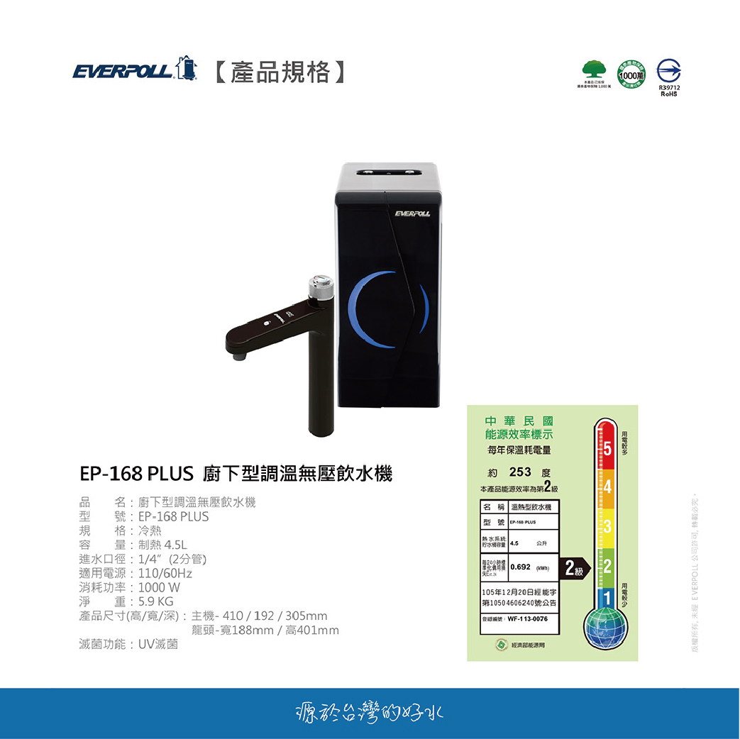 廚下雙溫調溫無壓飲水機|EP-168 PLUS【愛科濾淨】【旗艦款】