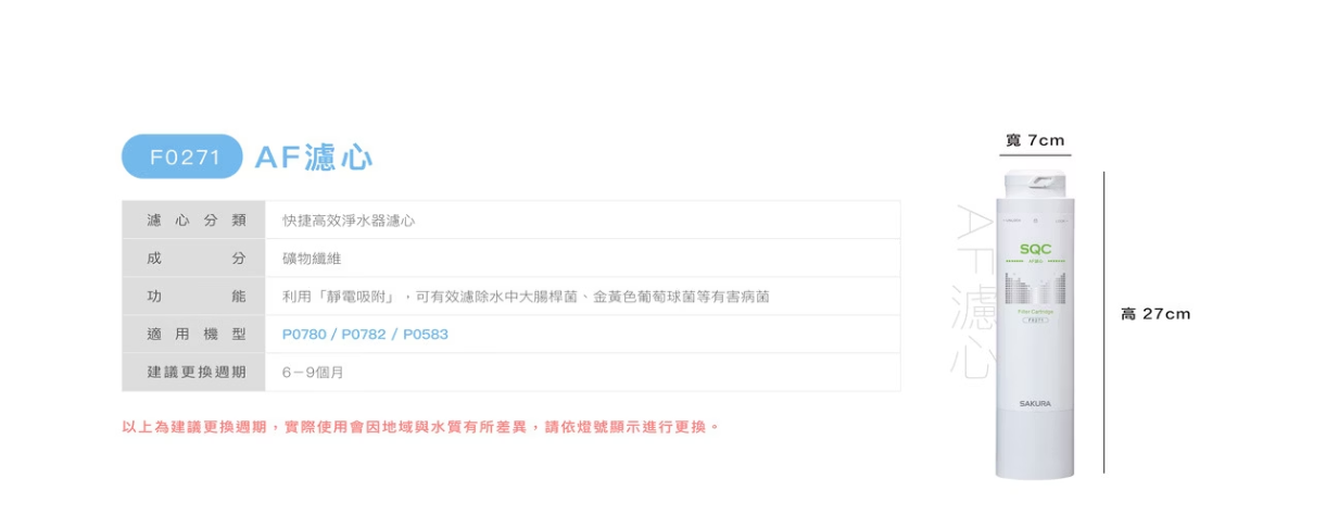 替換濾心|F0271 AF濾心【櫻花SAKURA】【適用於P0780/P0583】