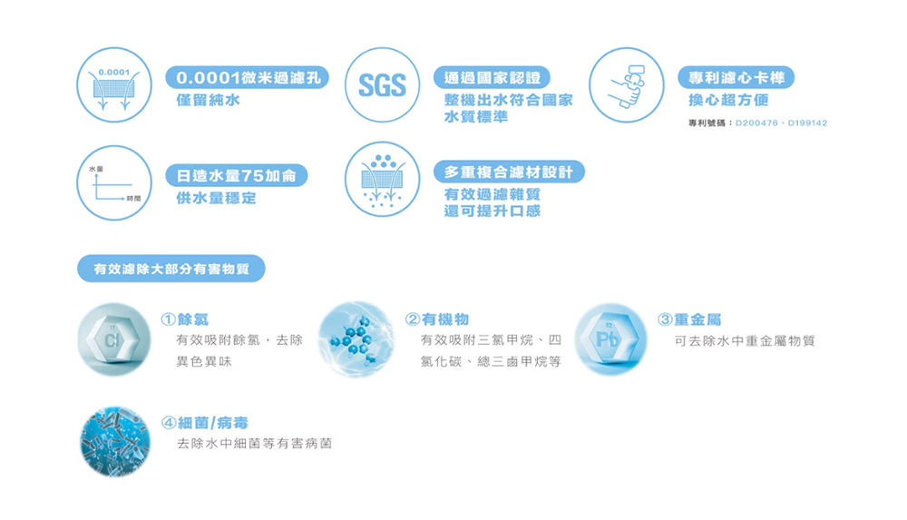 * 過濾孔孔徑僅0.0001微米,僅留純水