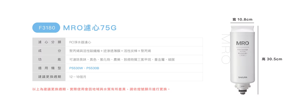 替換濾心|F3180 MRO濾心【櫻花SAKURA】【適用P5530W、P5530B】