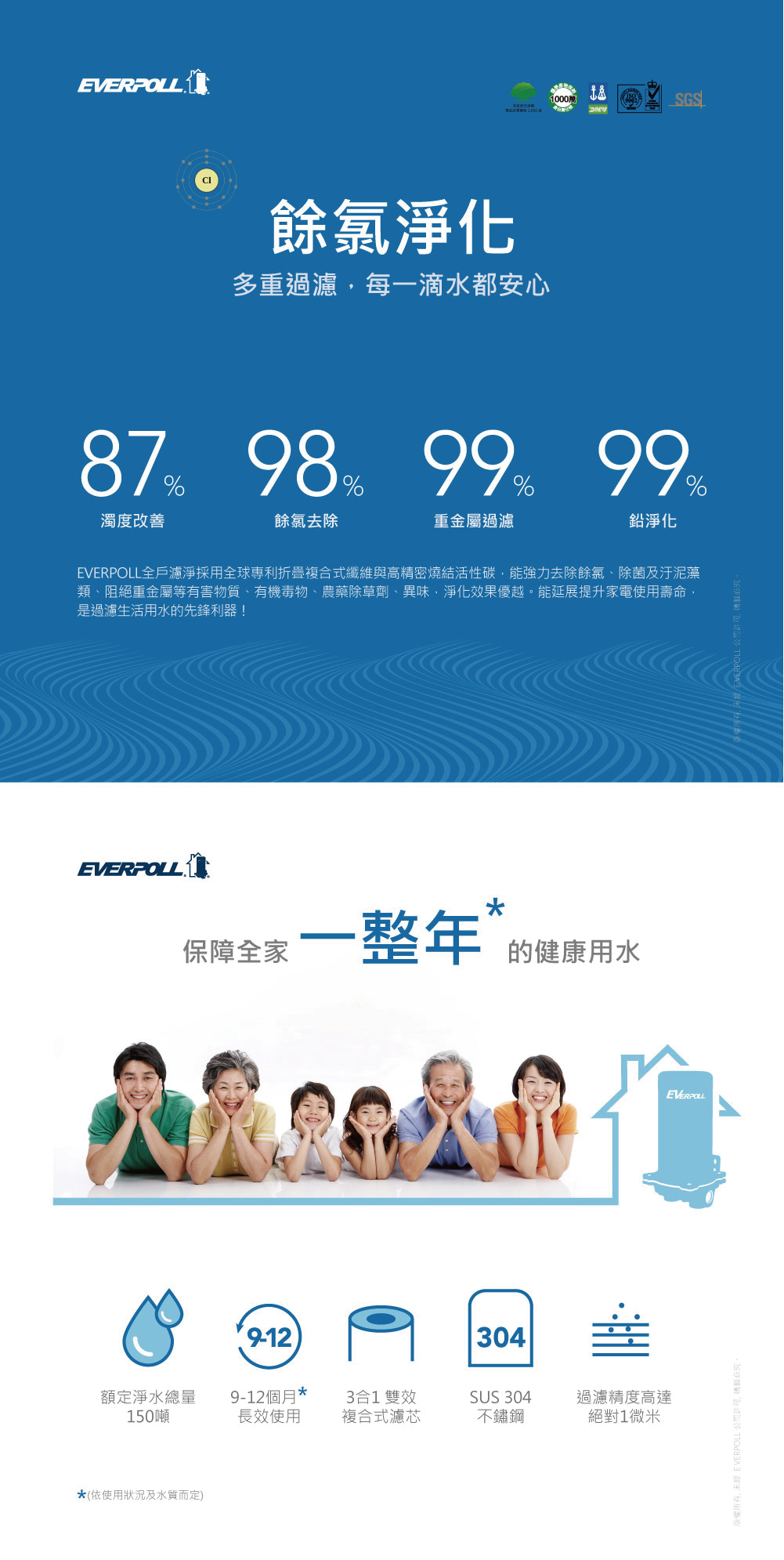 * 家中每處水龍頭皆無雜質、鐵鏽、氯 (消毒水)與汙染物