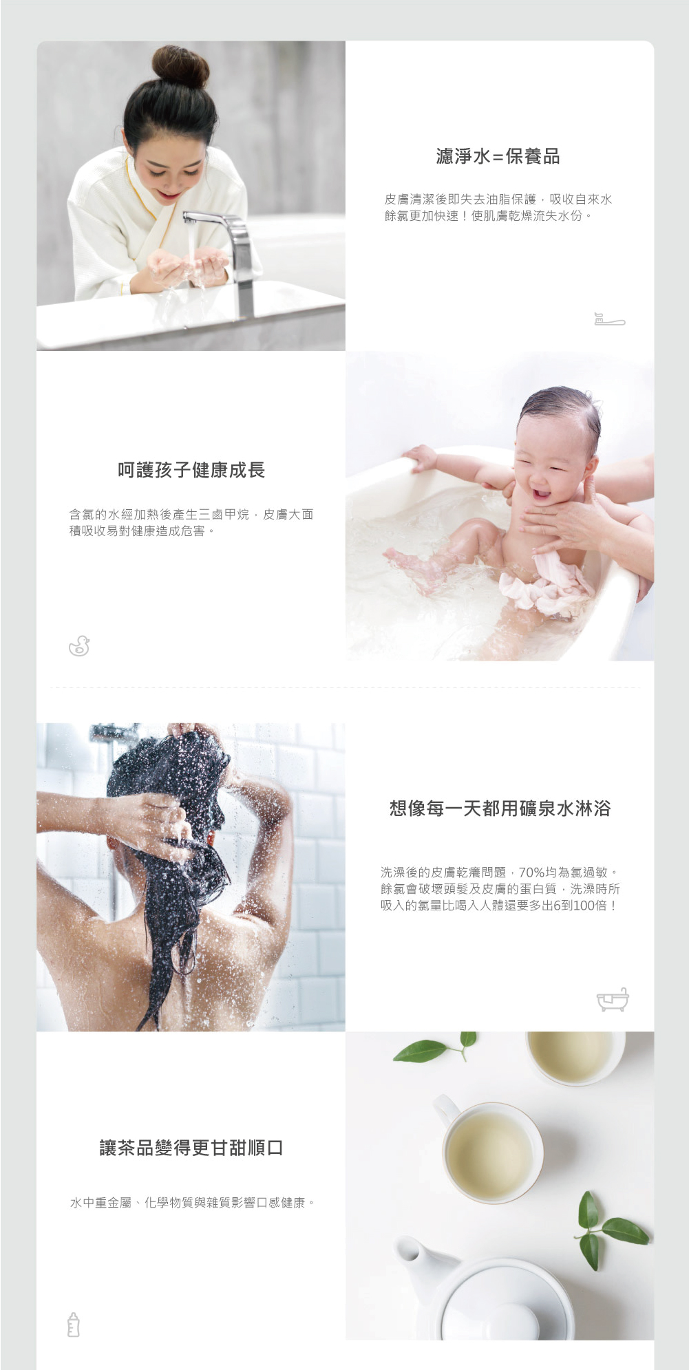* 改善刷牙、洗臉、清潔、沐浴、肌膚感染和過敏等用水衛生