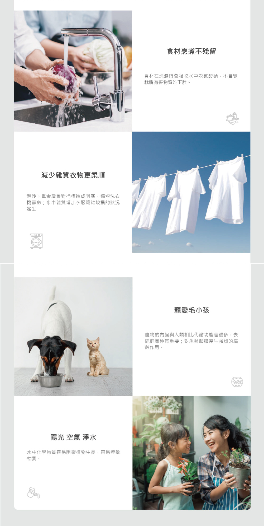 * 保護廚房設備及用水設備、水管、熱水器、洗衣機馬桶等使用壽命
