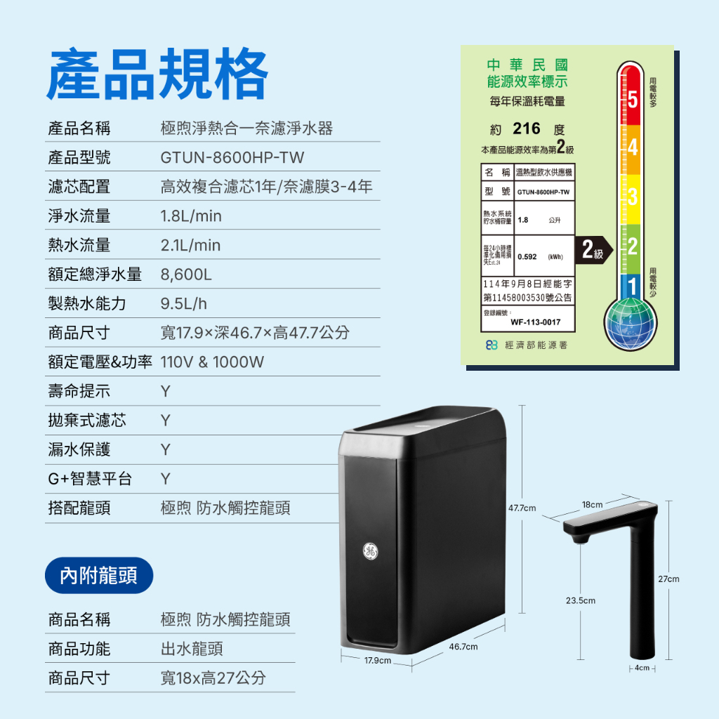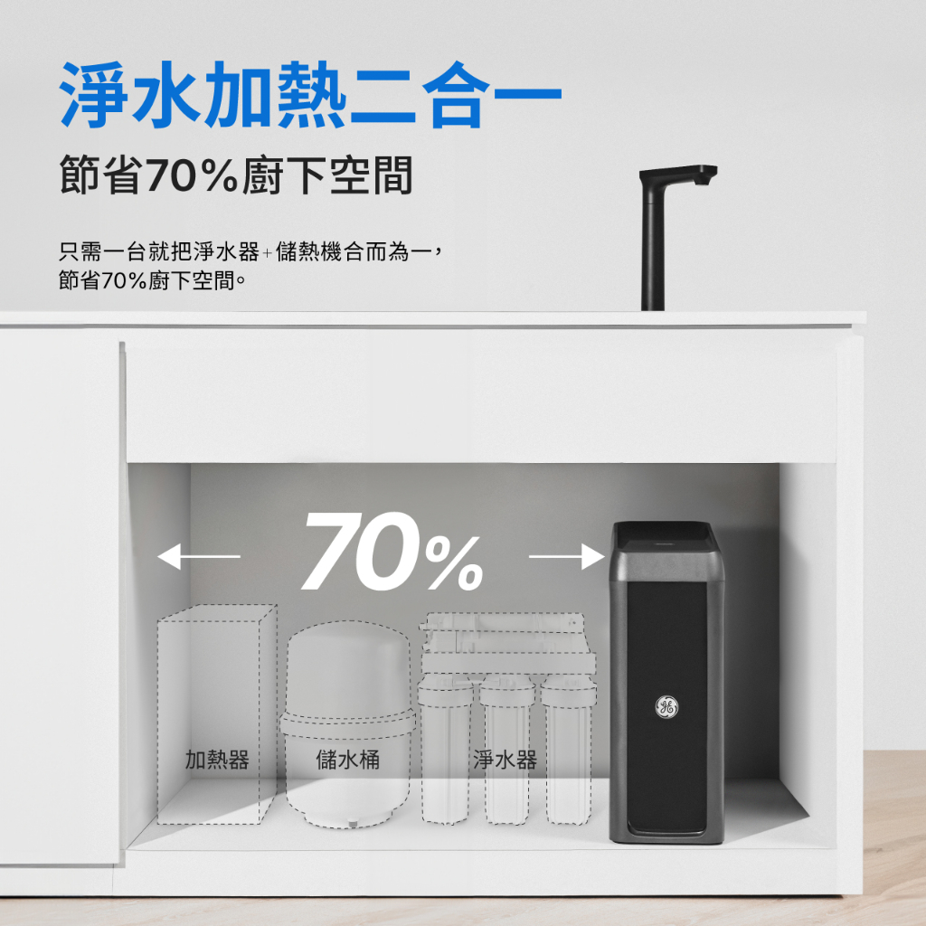 廚下淨熱飲雙機合一|極煦奈濾淨水器700G【GE奇異淨水】【奢華款】