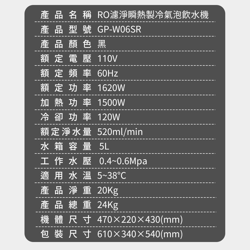 三溫淨熱氣泡飲機|GP-W06SR GP氣泡王 RO濾淨 瞬熱 製冷 氣泡 飲水機【GPLUS】【奢華款】