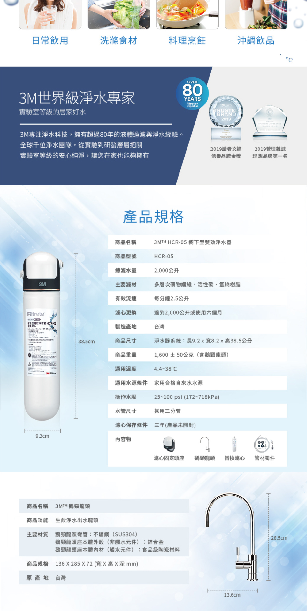 礦物型過濾|HCR-05 櫥下型雙效淨水器(通用HCRF2)【3M】【旗艦款】
