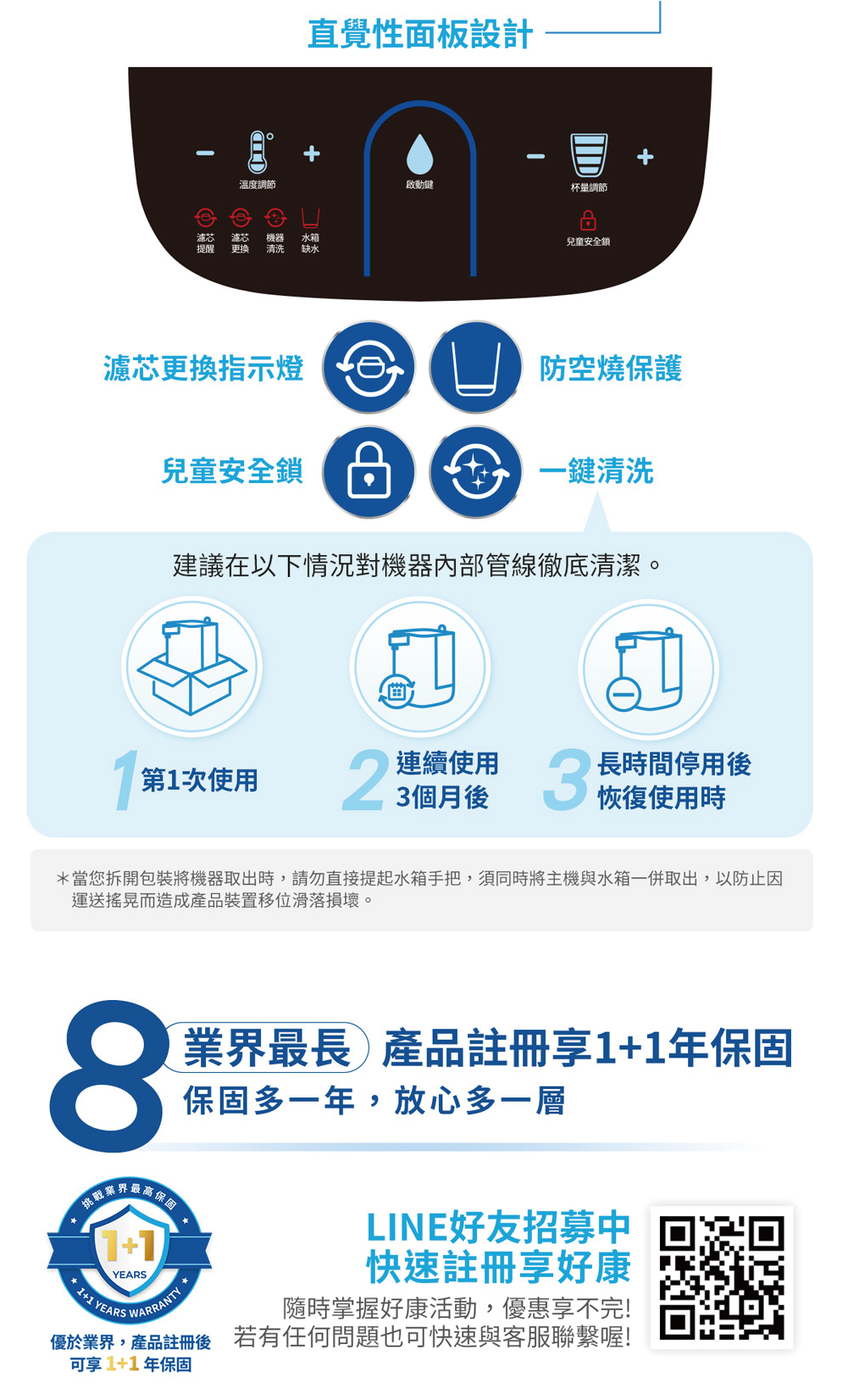 * 全球首發! 1鍵生飲免安裝,5秒瞬熱智能溫控