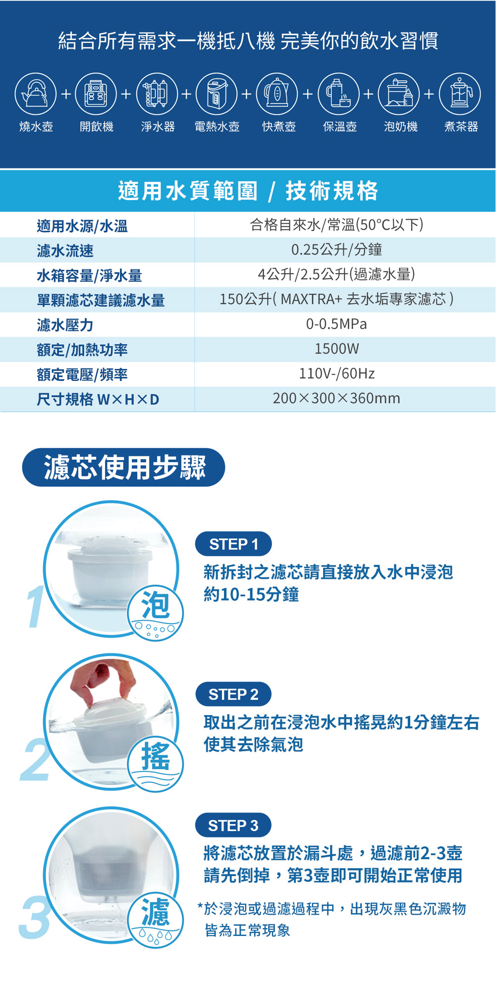 * 客製化貼心設計!4段溫度智能溫控與水量,滿足不同飲用需求