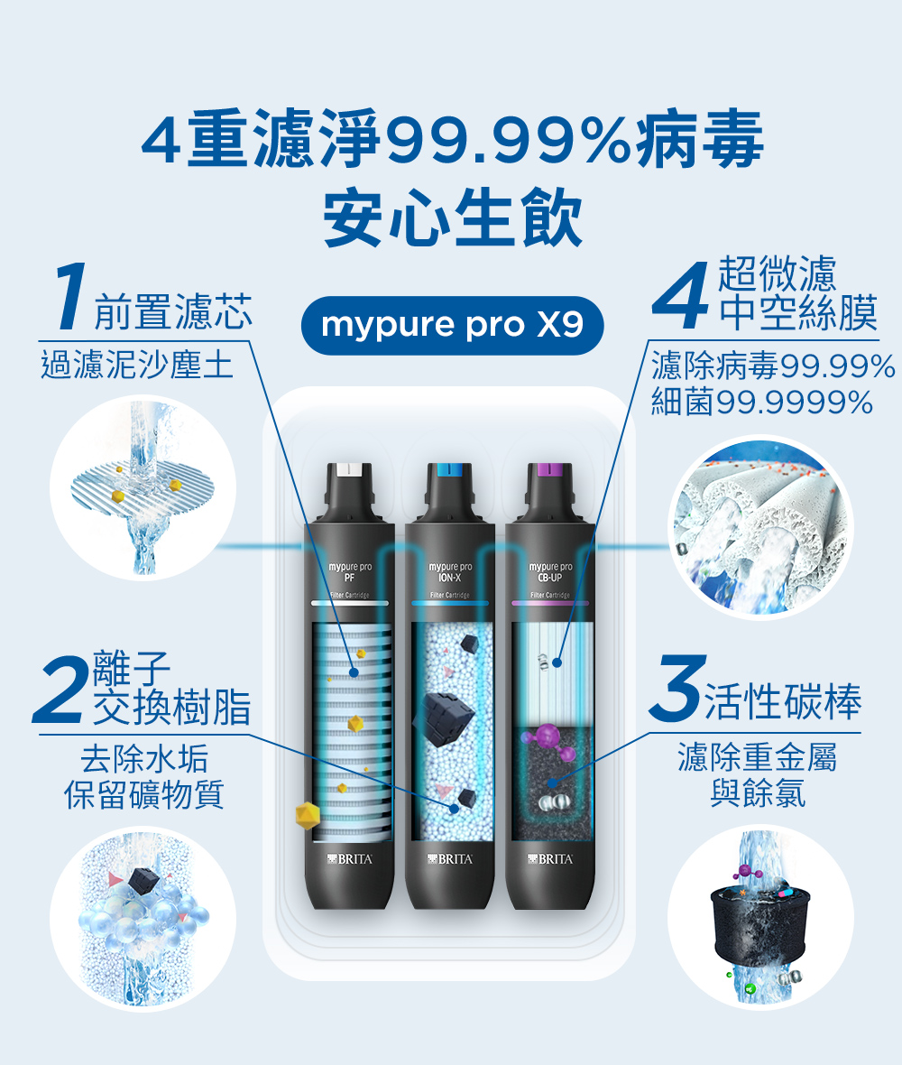 替換濾心組|mypure pro X9 濾芯組(3支入)【德國BRITA】【適用X9】