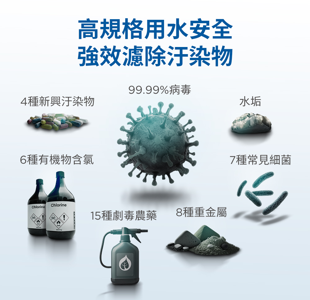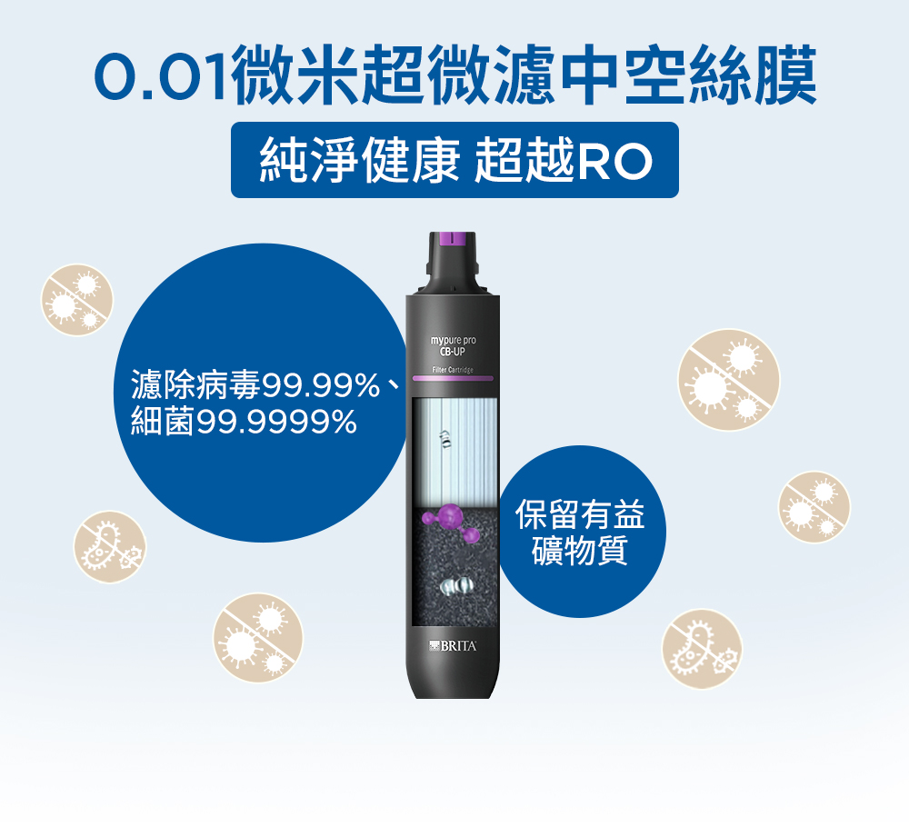 * 超微濾芯(CB-UP):過濾99.999%細菌,減少氯、重金屬等有害物質