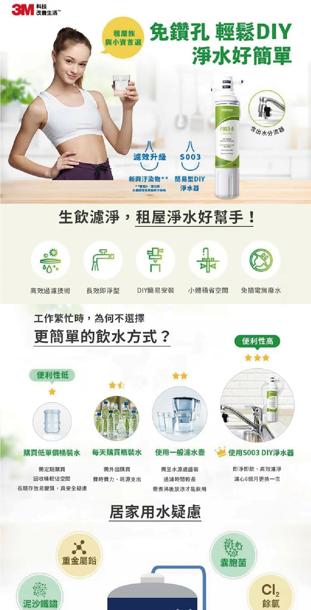 礦物型過濾| S003DIY 廚下型過濾淨水器(濾心可與3US-F003-5通用)【3M】【經典款】