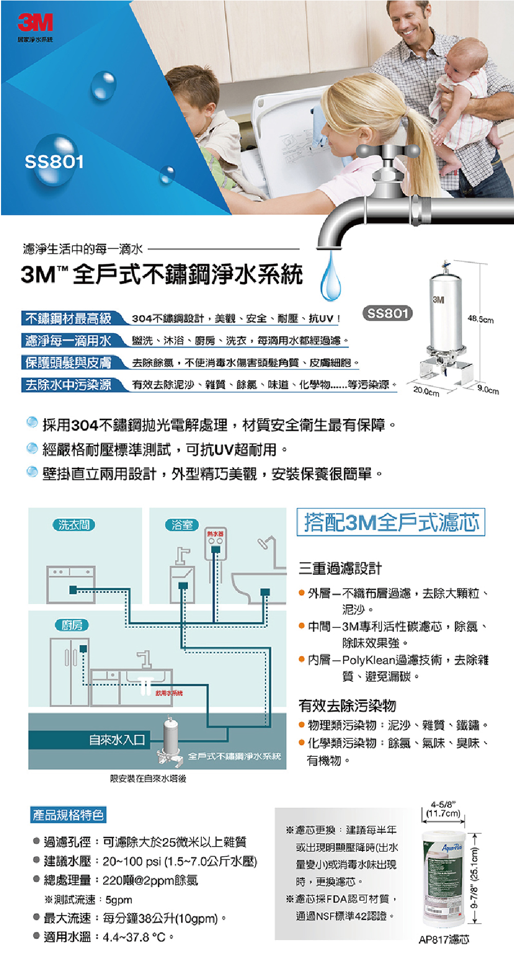 全戶型除氯|SS801 全戶式不鏽鋼淨水系統【3M】【經典款】