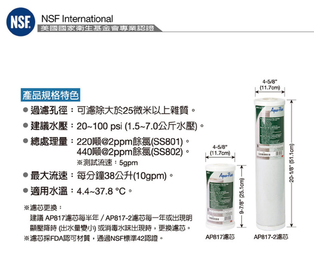 * AP817-2濾芯:高51.1 X Φ11.7 (單位:cm)