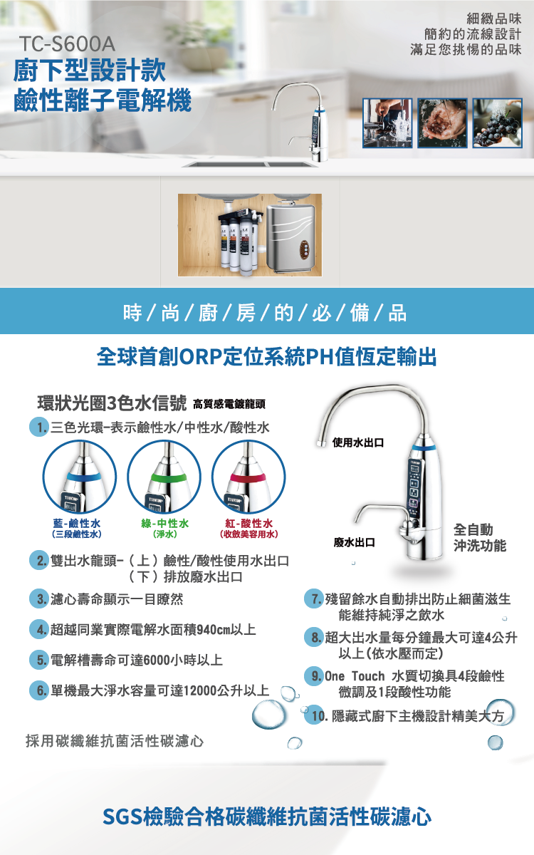 電解鹼性離子水|TC-S600A 精巧廚下電解水機【天康淨水】【旗艦款】