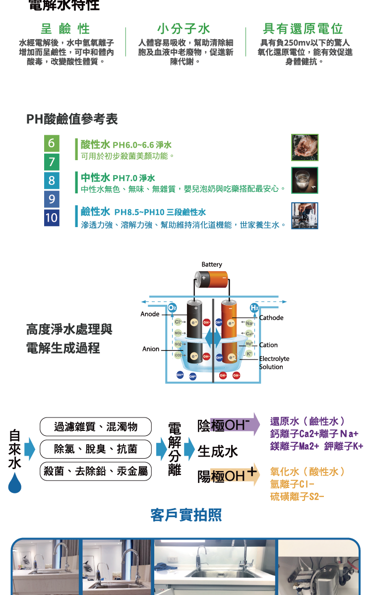 * 具強酸鹼功能可作蔬菜解毒及殺菌消毒作用