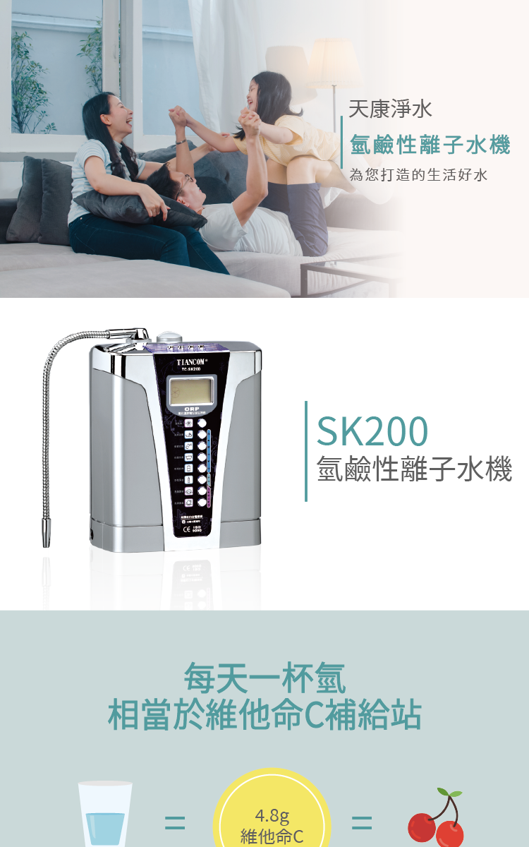 電解鹼性離子水|TC-SK200 雙能量卓越輝電解水機【天康淨水】【奢華款】
