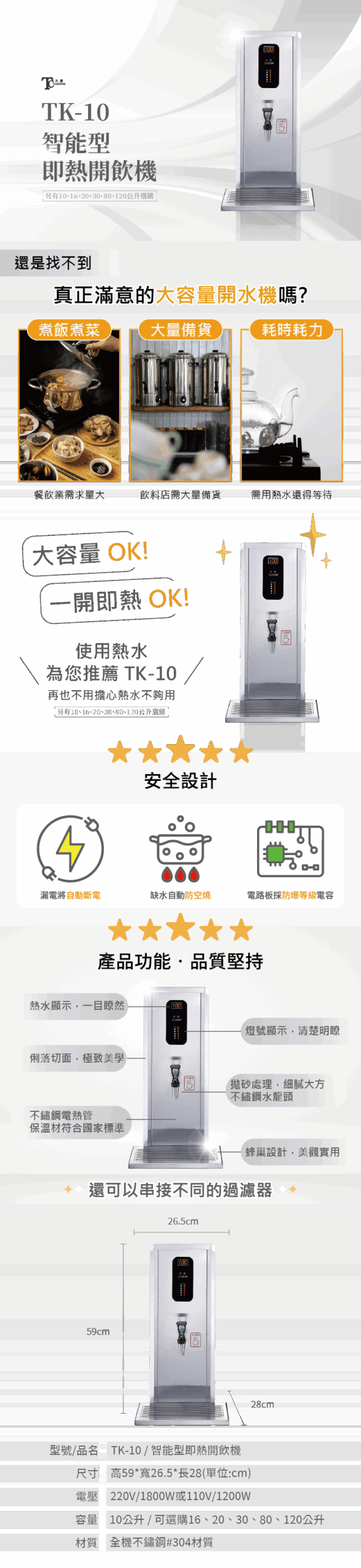 * 全機不鏽鋼#304材質