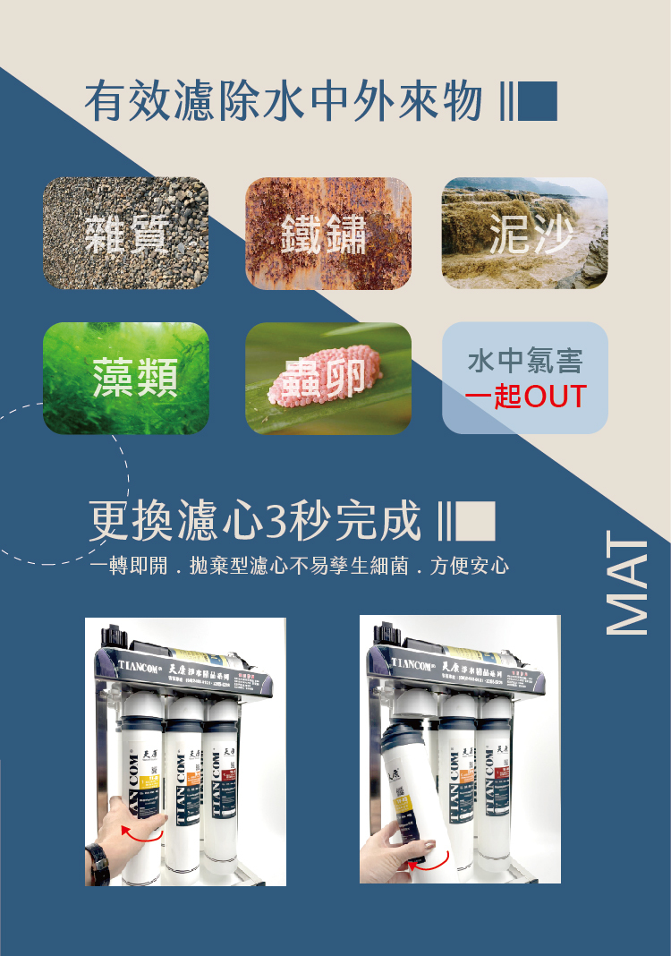 * 更換方便三秒換濾心