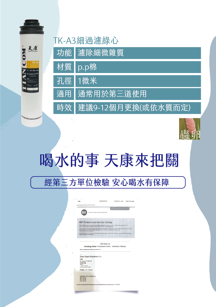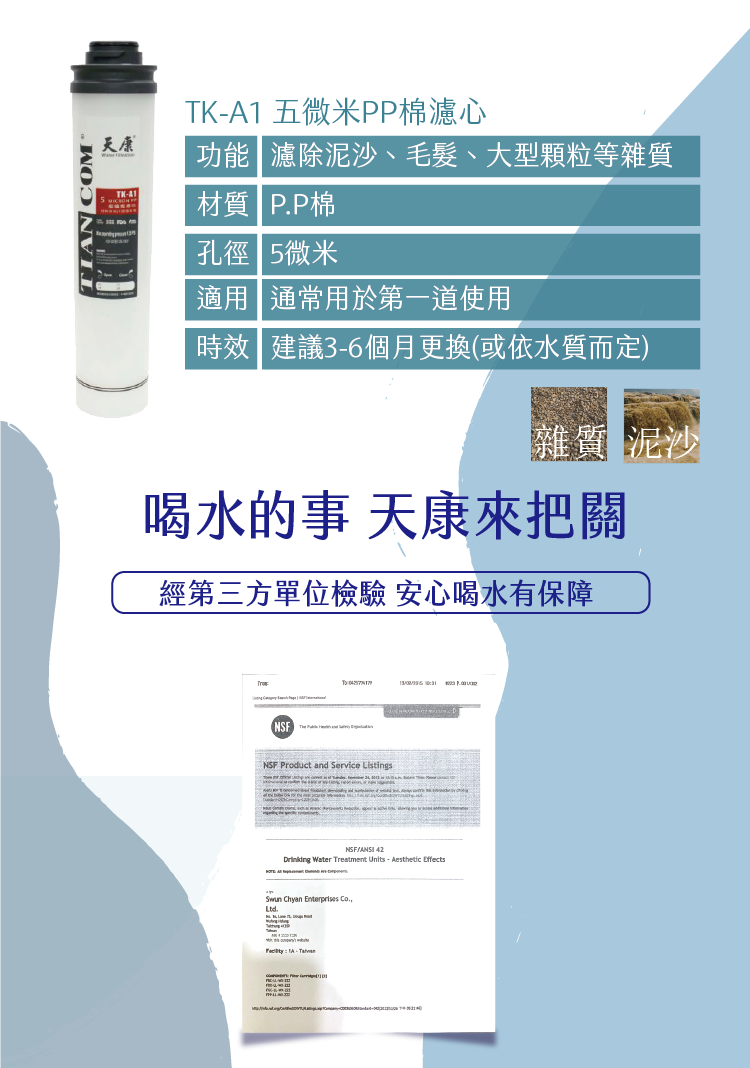 卡式濾心組|TK一年份 前置3道組合包(共7支) / TK-A1/ TK-A2 / TK-A3 / PP濾心 / 活性碳 / 細過濾【天康淨水】