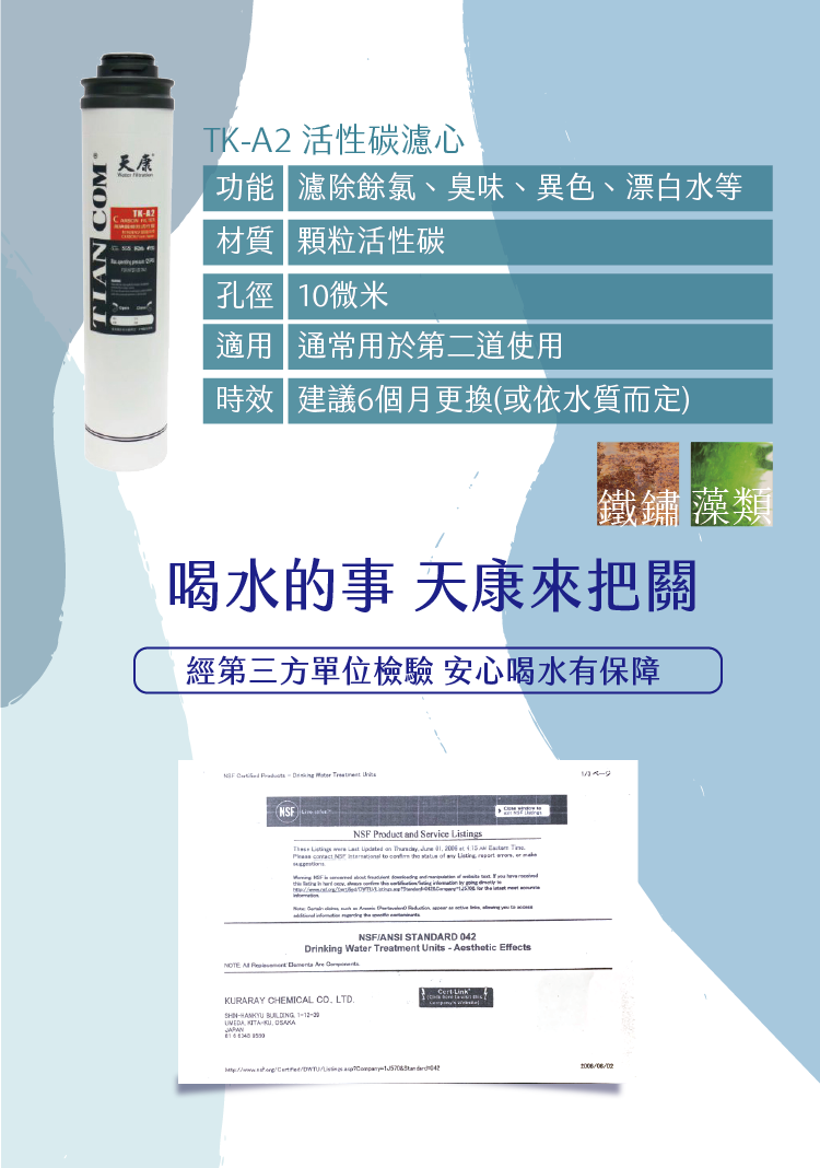*採用頂級椰殼活性碳,過濾水中的異臭味、有機元素、致癌物質、如氯、農藥殘毒等等