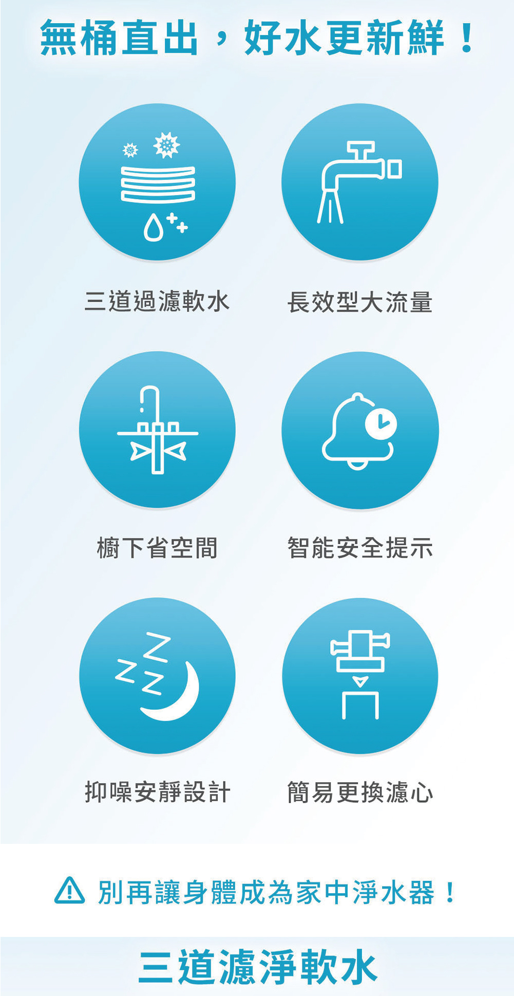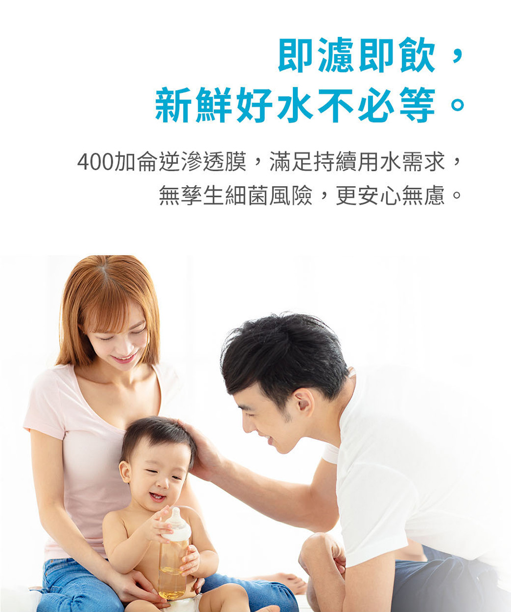 * 三道精密過濾,快速造水即開即飲