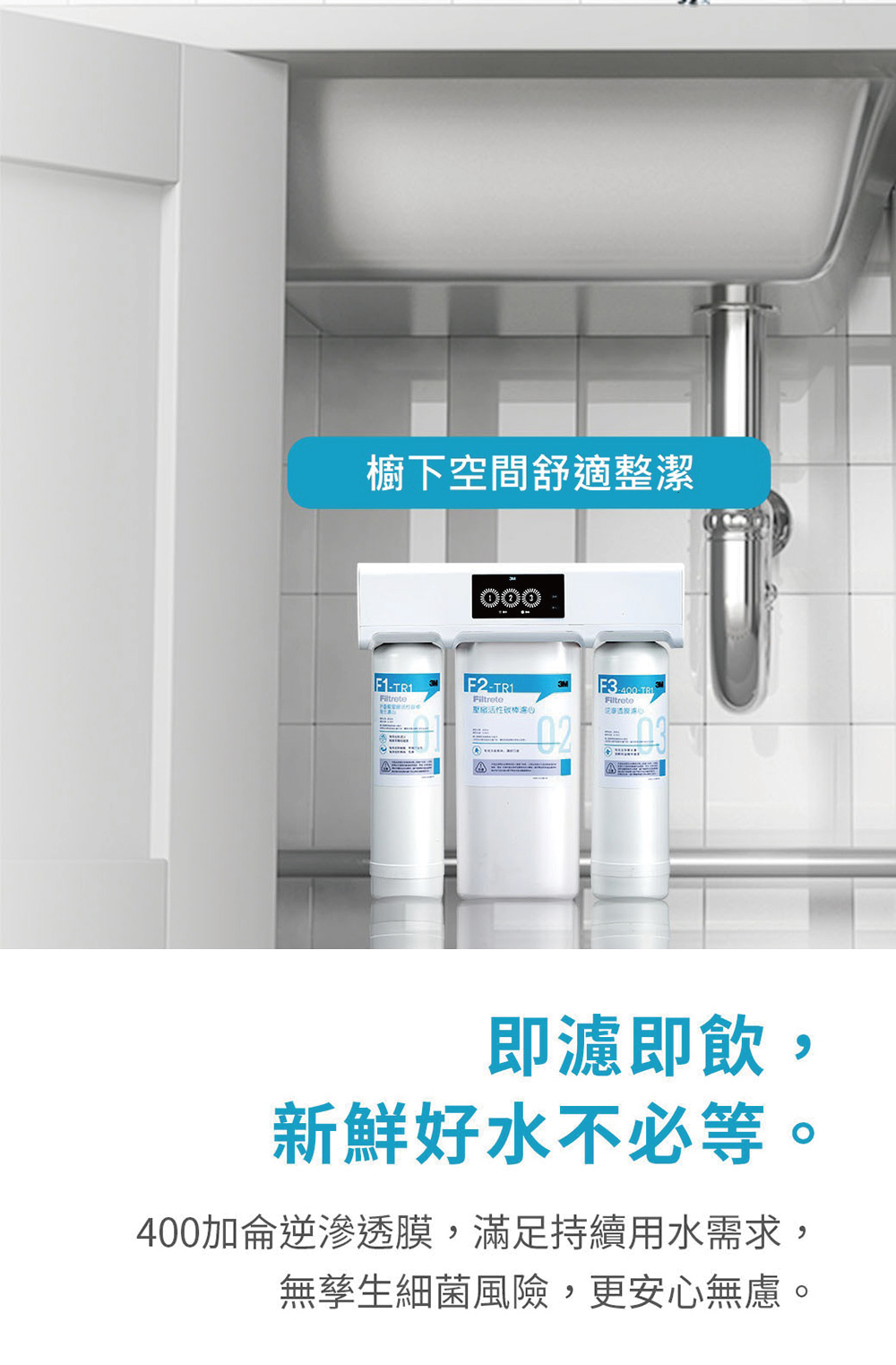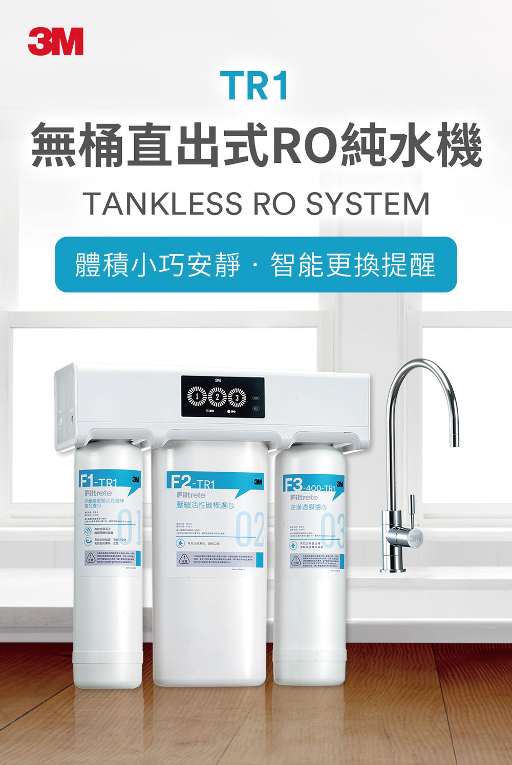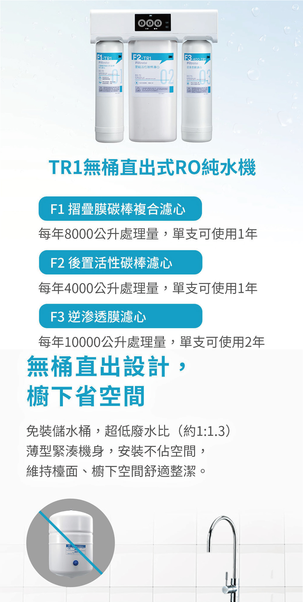 直輸式RO逆滲透|TR-1 櫥下型無桶直出式RO逆滲透純水機【3M】
