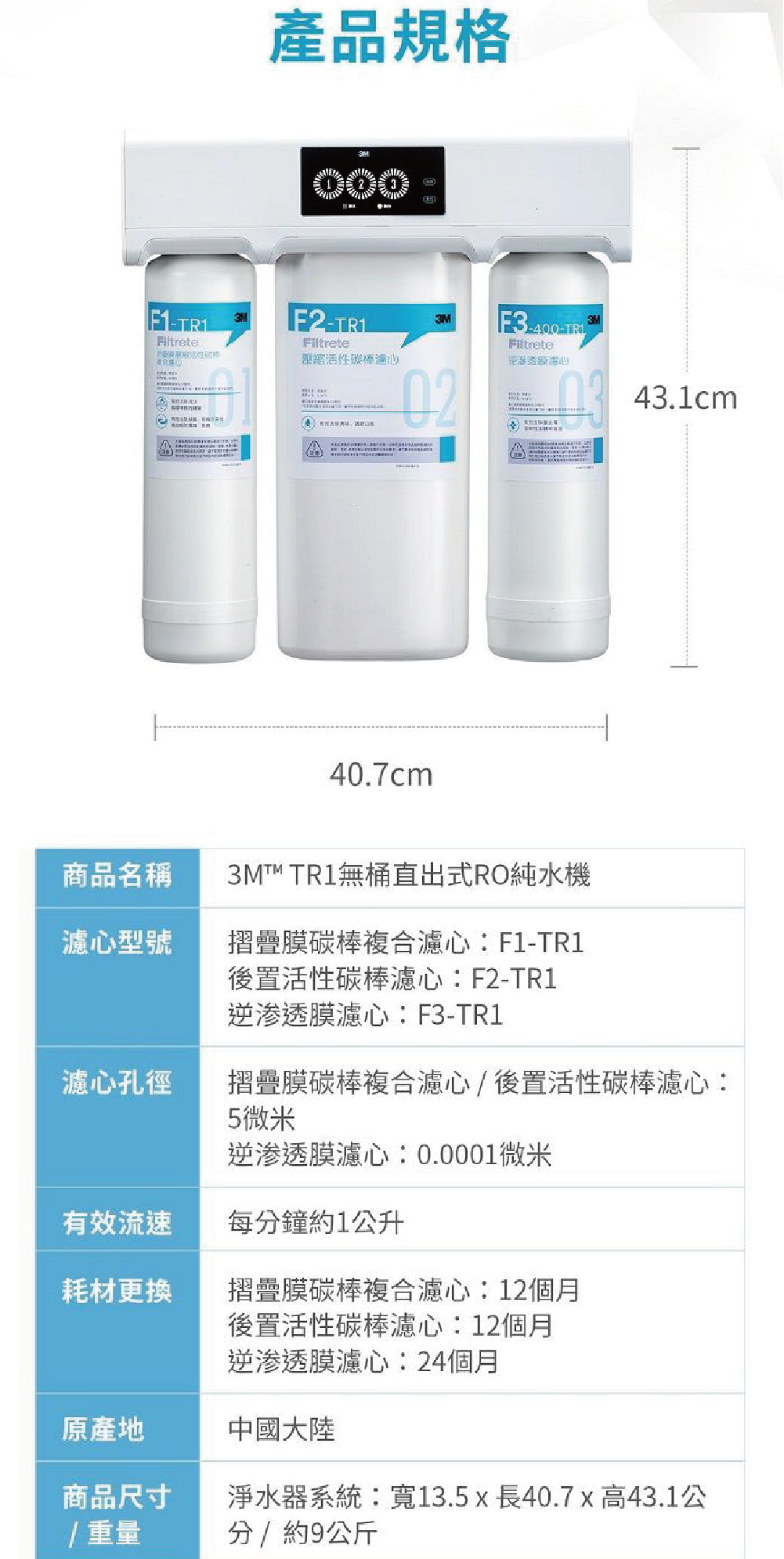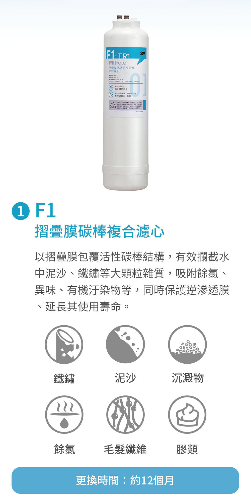 * 第一道 : F1-TR1,約1年更換一次(或依水質)