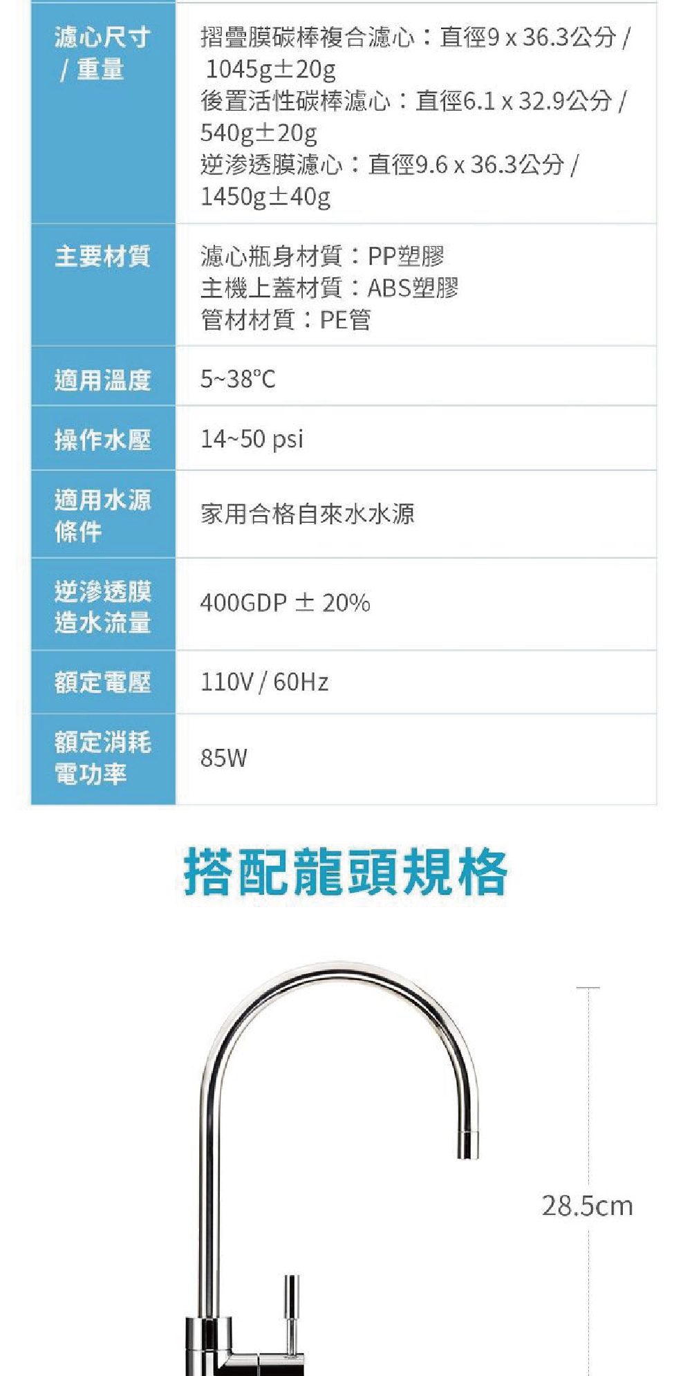 * 出水量大,每分鐘可達1公升以上,可濾淨水量達4,000公升