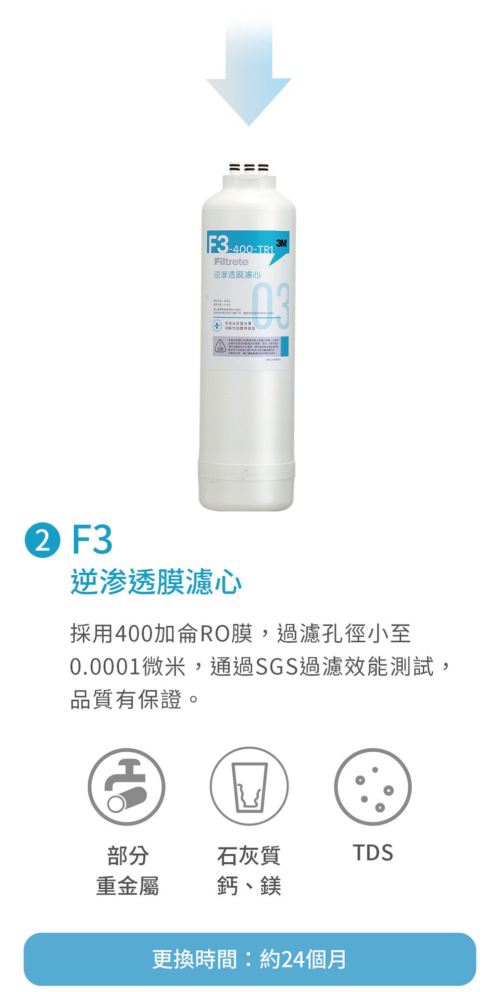 * 第三道 : F3-TR1,約2年更換一次(或依水質)