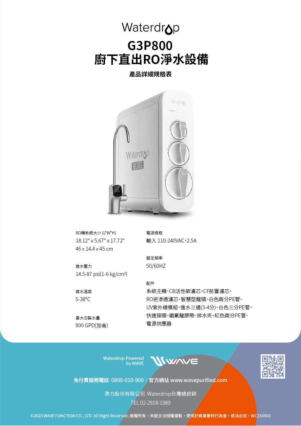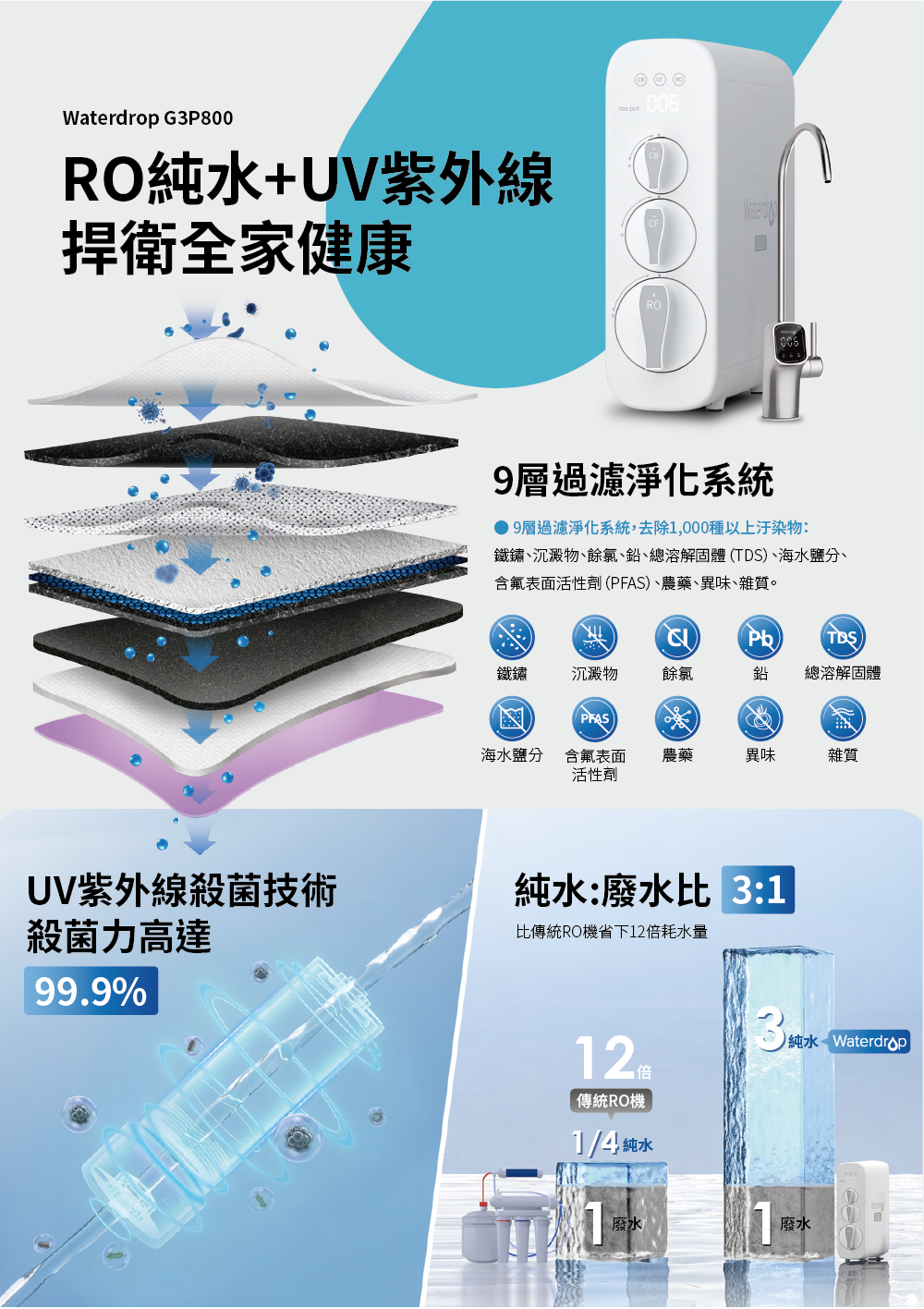 直輸式RO逆滲透|Waterdrop G3P800廚下直出RO淨水設備【愛惠浦】【旗艦款】
